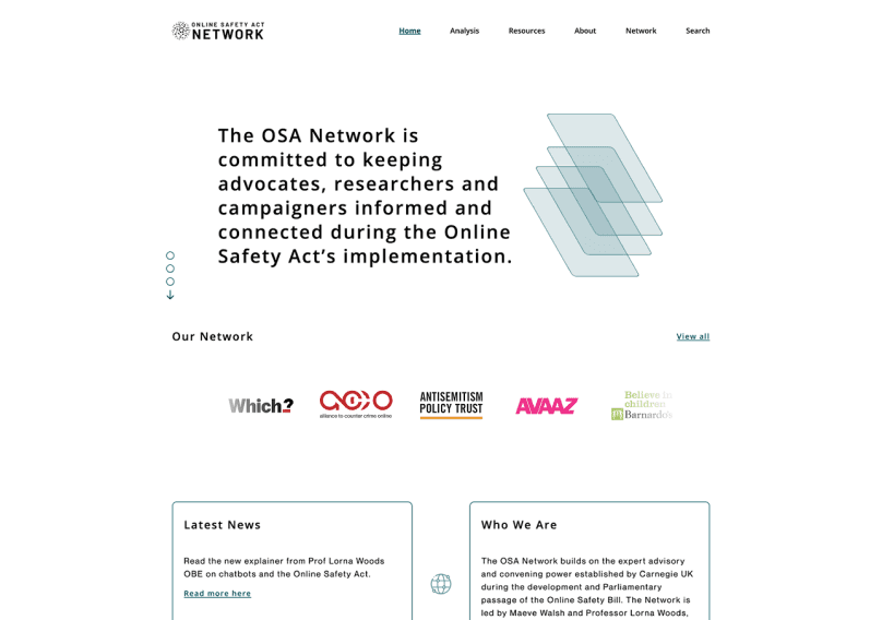 A rebuilt hub that allows advocates, researchers, and campaigners to quickly navigate the platform to search for and find appropriate resources related to the Online Safety Network.